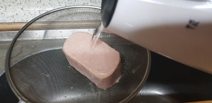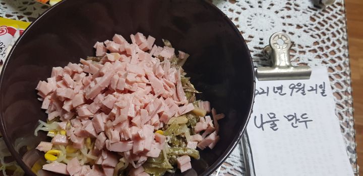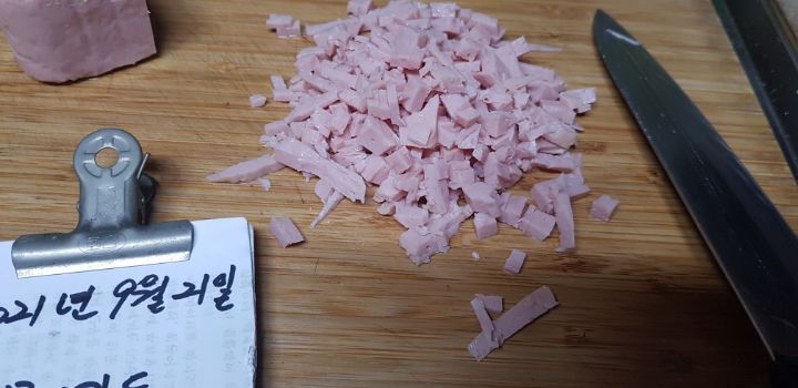 나물 잘게 썰어둔곳에 햄을 넣어줍니다