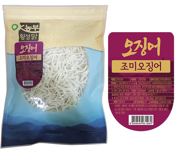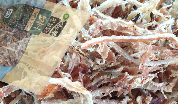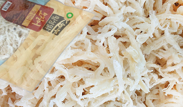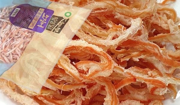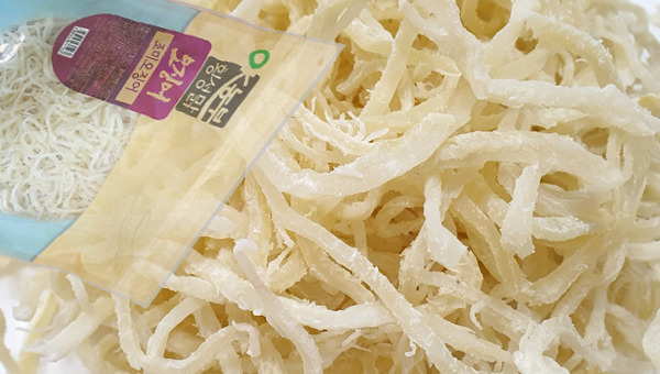 조미오징어 보다 조금 더 굵게 채 작업 되어 있습니다.