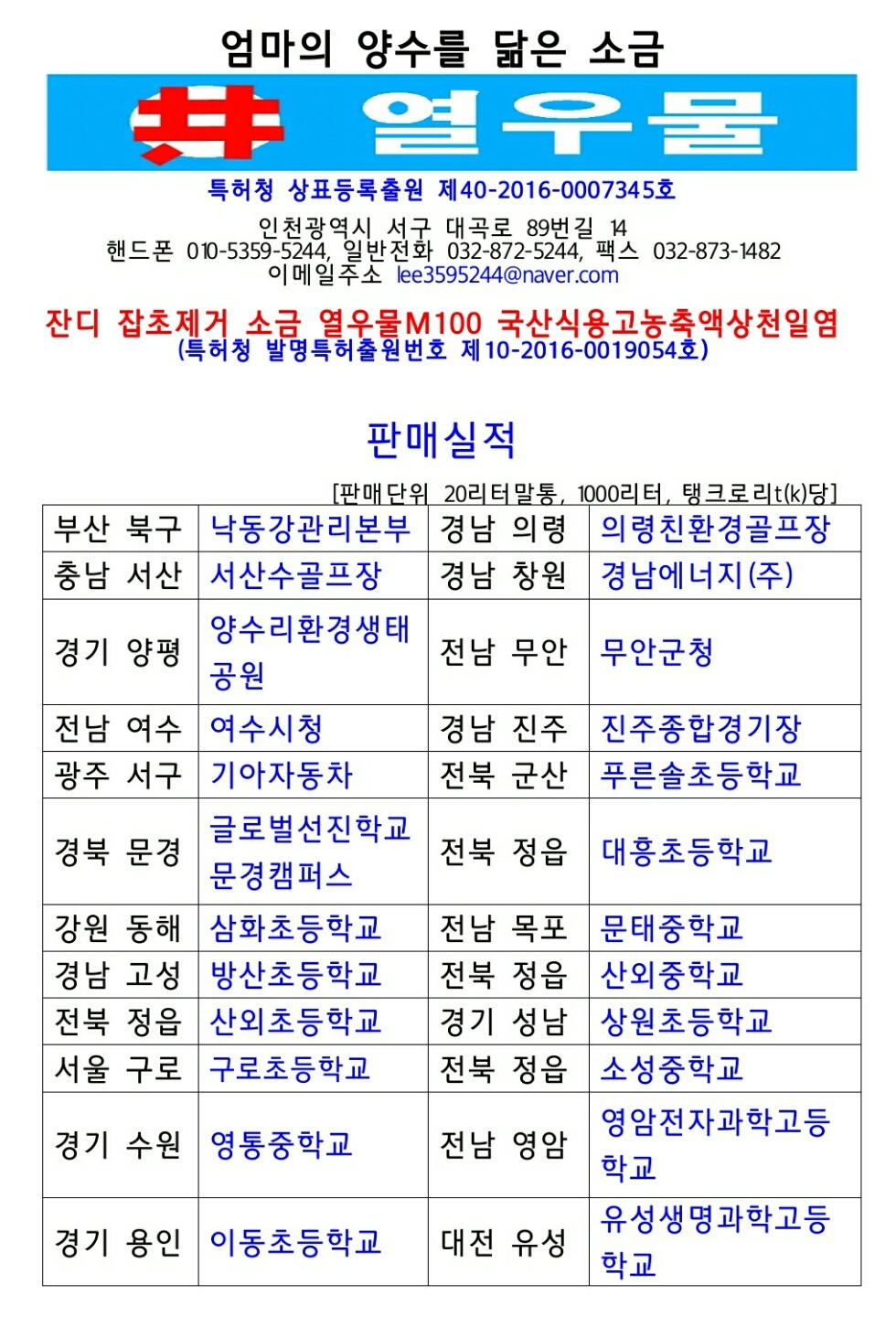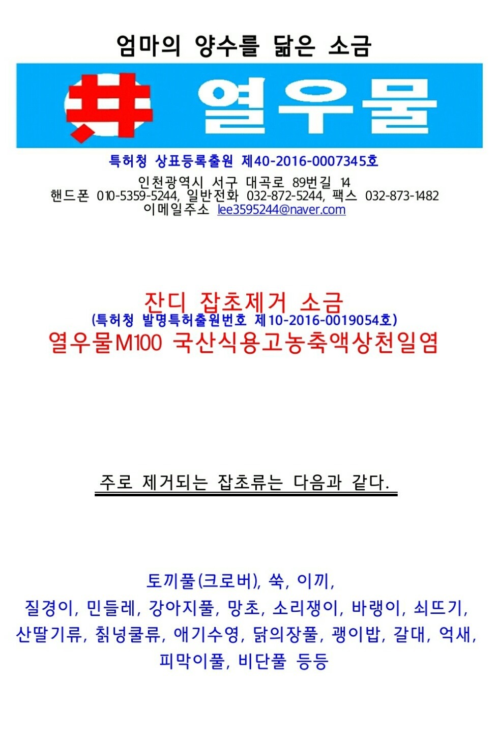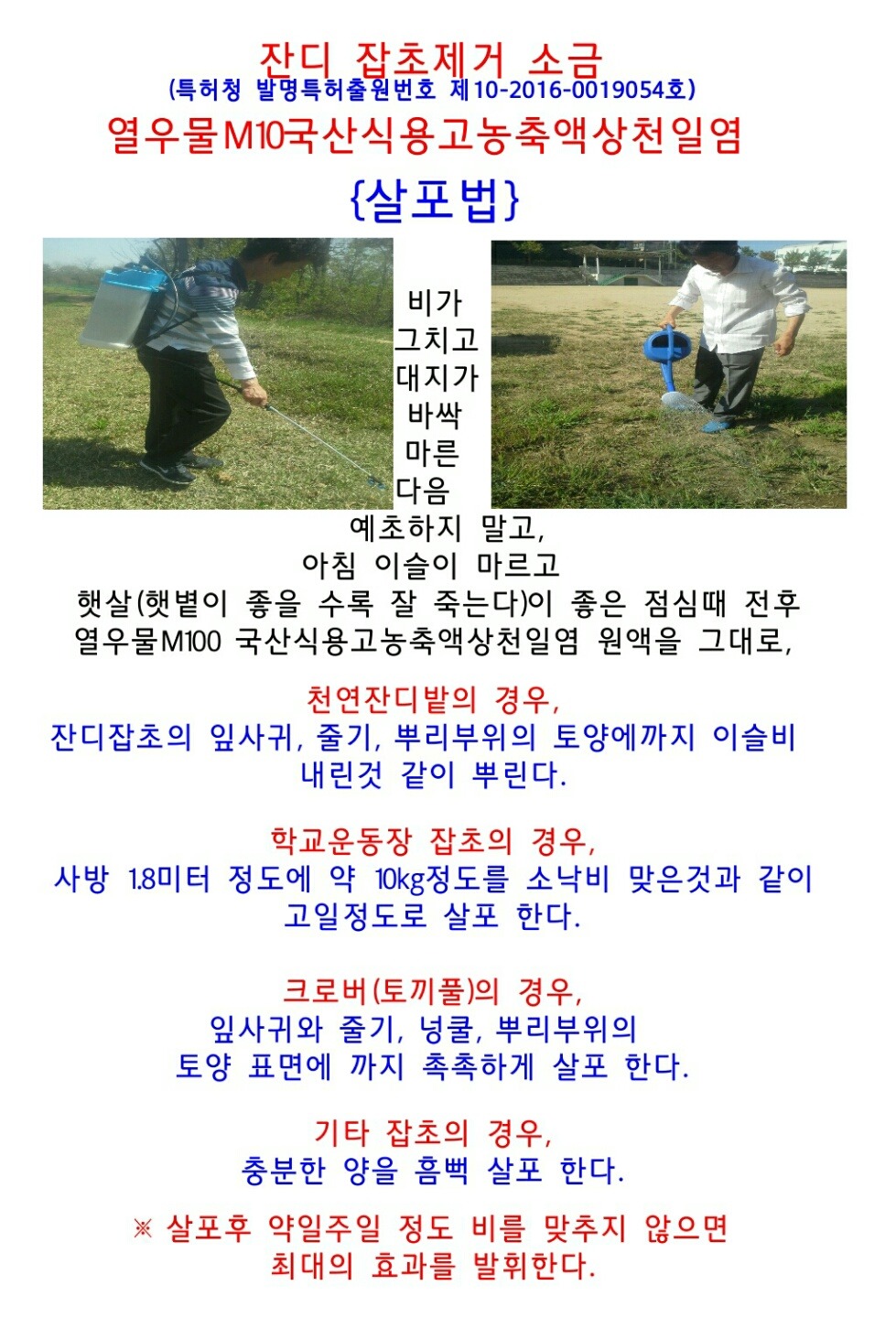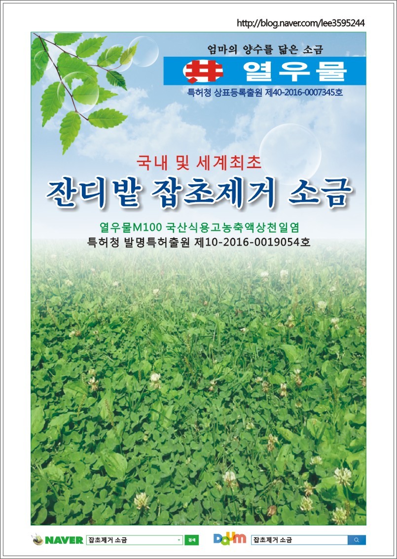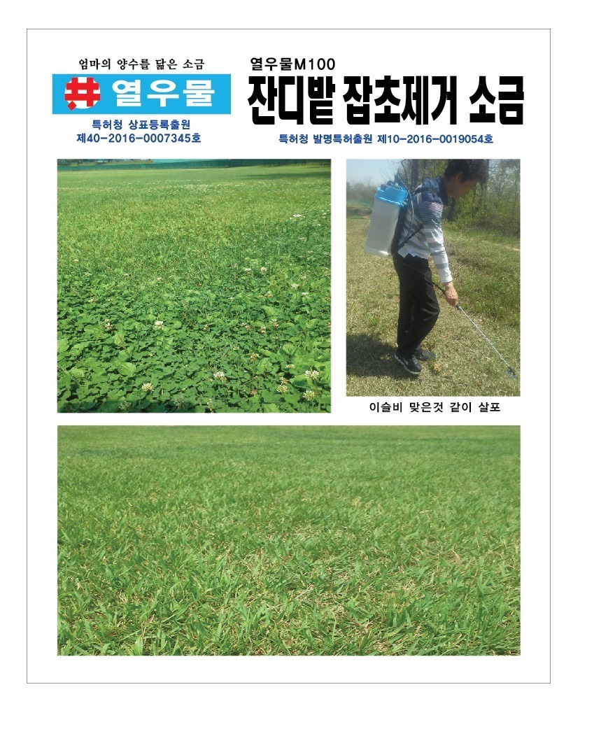 ■ 100%친환경 무농약 잔디 제초제 잔디밭 잡초제거 소금 열우물M100 발명특허출원 ■