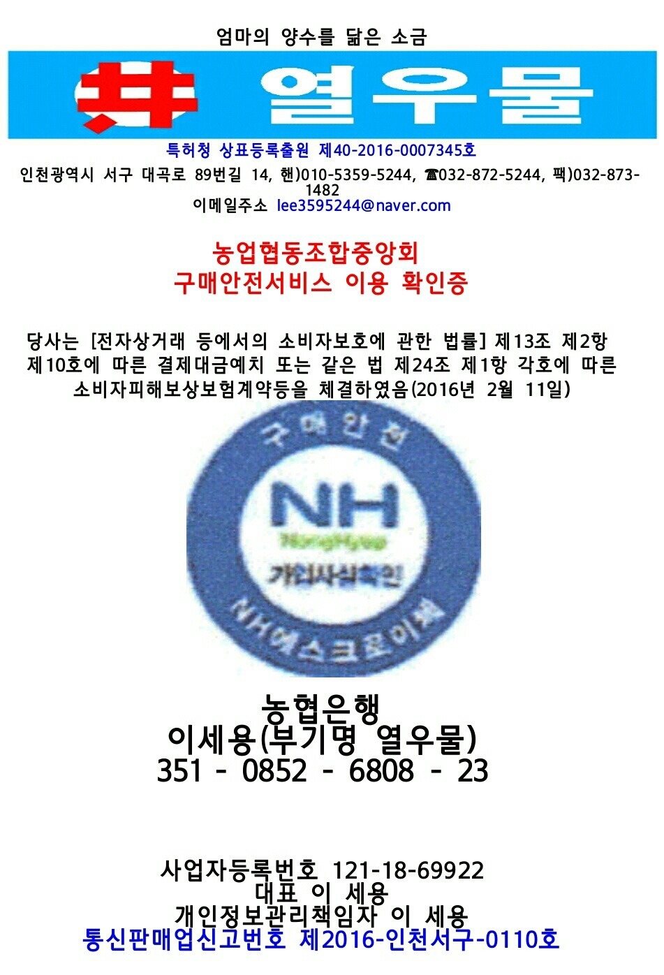 ■ 열우물 저염고미천일염을 드셔야 삶이 짭짤합니다 ■