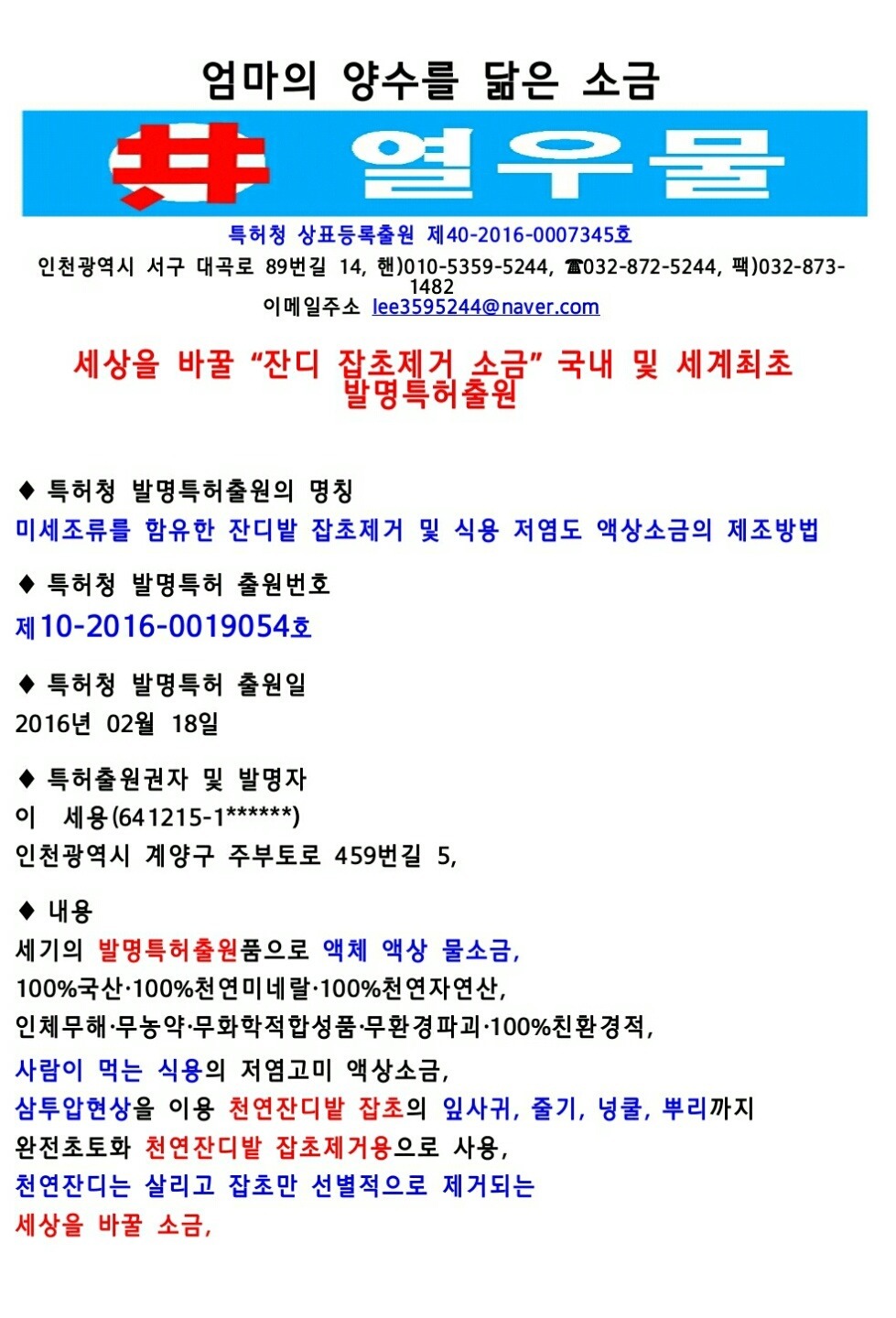 열우물 대표 이세용은 소금발명가로,
