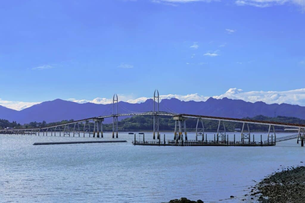 자동차가 다니지 않는 출렁다리를 건너면 산과 바다를 감상하여 걸을 수 있는 2.5km의 생태탐방로가 나무 사이로 불어오는 바람과 함께 싱그러운 기분을 안겨준다.