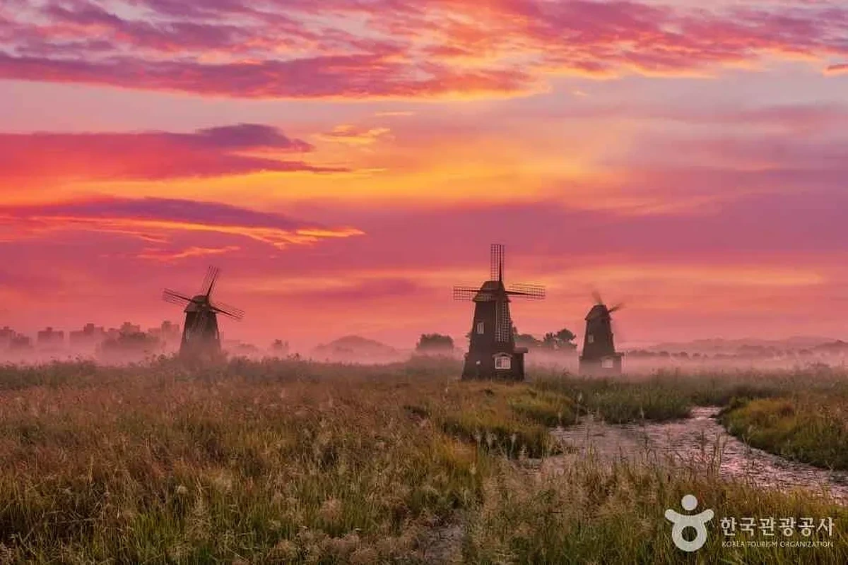 소래습지생태공원은 붉은 칠면초와 바람에 일렁이는 억새가 계절마다 색다른 풍광을 연출하는 곳으로, 인천 사람들뿐만 아니라 수도권에서 많은 이들이 찾고 있습니다. 특히 빨간 풍차가 일렬로 서 있는 풍경이 이국적인 분위기를 자아내 사진 명소로도 꼽힙니다.