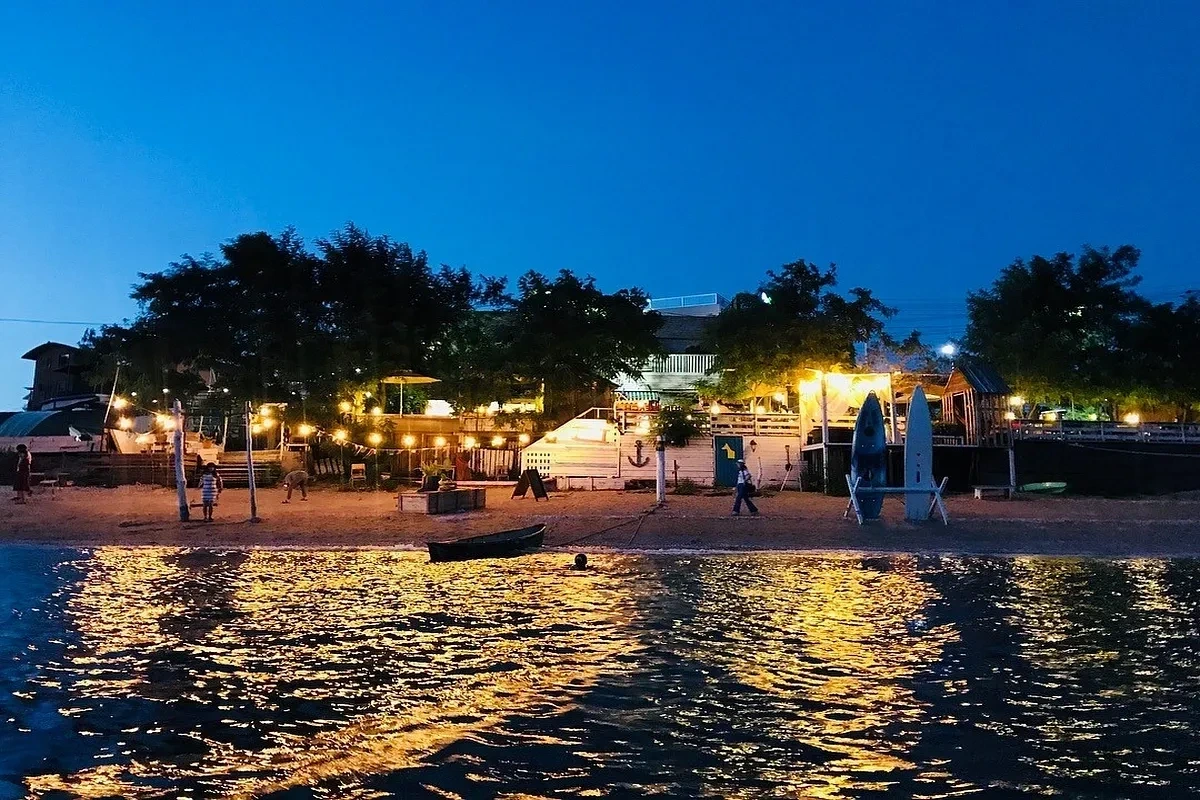 선재도의 한적한 해변에 자리 잡은 뻘다방은 탁 트인 갯벌 뷰와 발리를 닮은 우드 인테리어가 인상적인 카페입니다. 붉은 일몰 시각이면 더욱 이국적인 풍경을 자아내며, 해변에 설치된 그네는 마치 해외 휴양지에 와 있는 듯한 기분을 선사합니다.