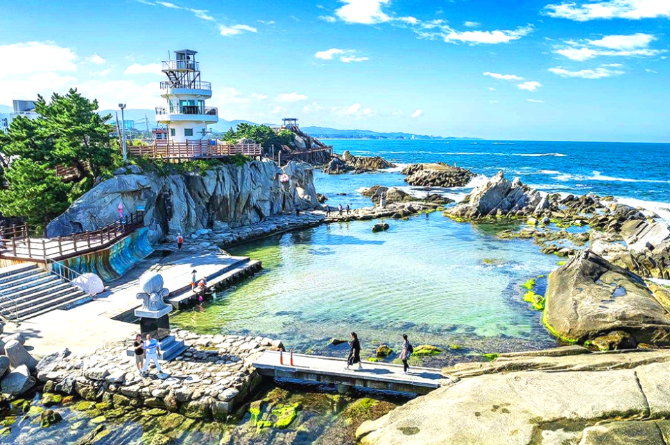 산책로는 기암괴석 사이를 부드럽게 잇는 데크길로 잘 정비되어 있어, 나이 불문 누구나 편하게 걸을 수 있어요. 바위 위로 올라 바다를 바라보는 그 순간, ‘강릉의 진짜 풍경은 이거구나’ 하는 생각이 저절로 들죠.