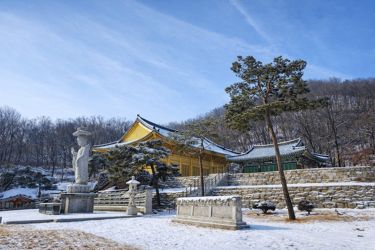 수국사는 화려한 관광지라기보다, 기도와 사색의 기운이 분명한 사찰입니다. 그래서 겨울처럼 마음이 안으로 향하는 계절에 더 잘 어울립니다. 눈 덮인 경내, 황금빛 대웅전, 그리고 오랜 왕실의 이야기가 겹쳐지며, 서울 한복판에서도 충분히 깊은 시간을 만들어 줍니다.