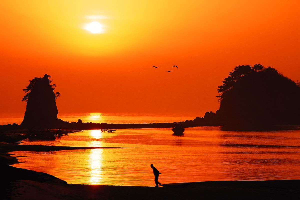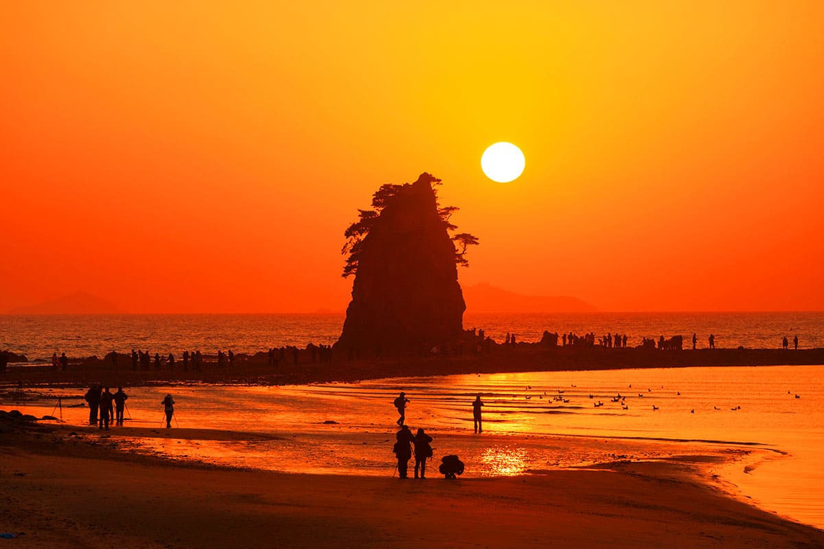 이곳의 갯벌은 썰물 때에는 드넓은 평야처럼 펼쳐져 일몰의 아름다움을 한층 더 돋보이게 합니다. 하늘과 바다가 하나로 이어지는 듯한 풍경은 사진작가들 사이에서도 유명합니다.