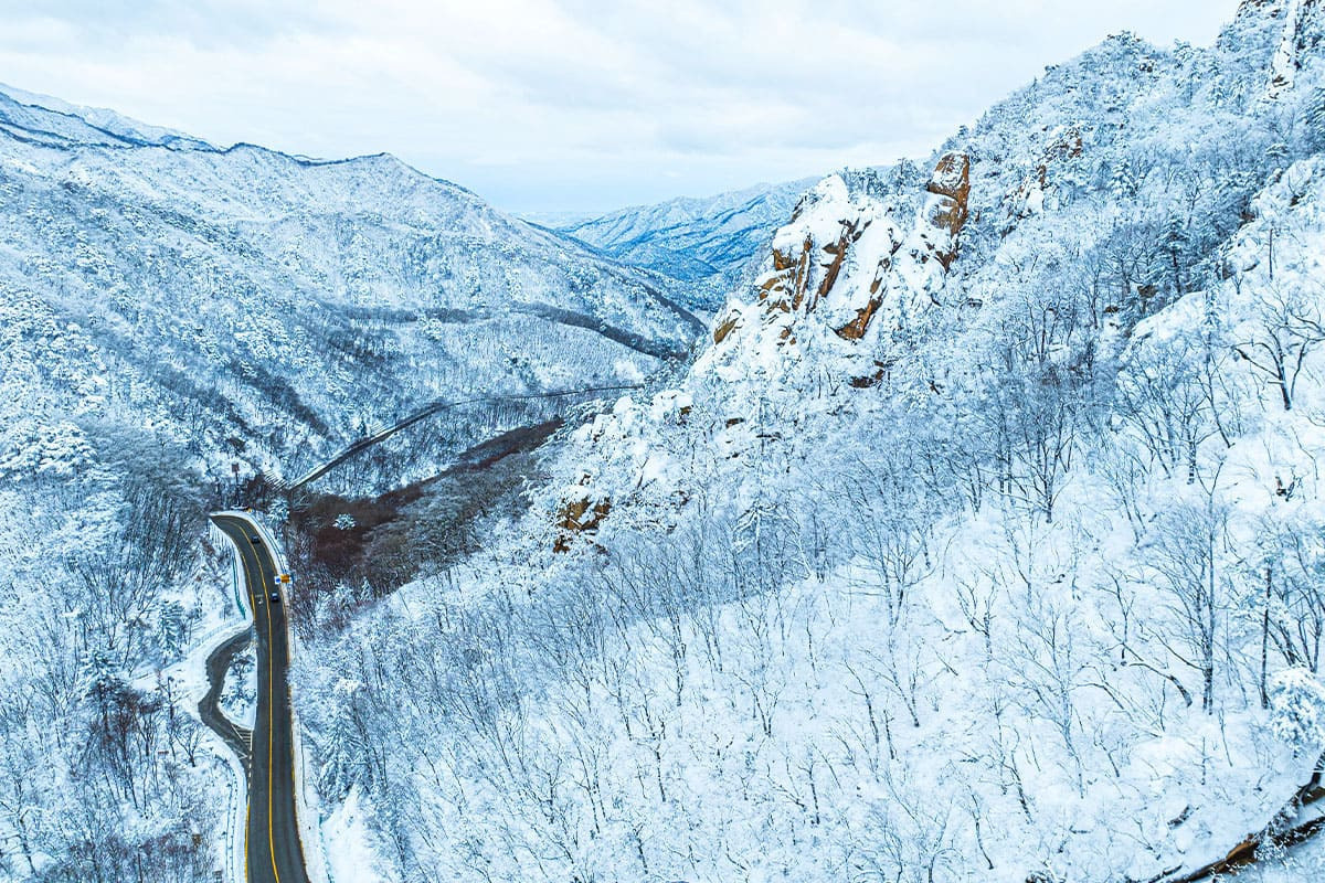 강원도 인제군에서 양양으로 이어지는 한계령 도로는 설악산 국립공원의 겨울을 온전히 느낄 수 있는 명소입니다.