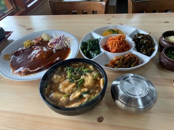 봉포리의 산모퉁이는 추어탕과 돈가스로 유명한 맛집입니다. 특히 돈가스는 어른들도 추어탕보다 선호할 정도로 맛이 일품입니다.