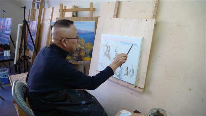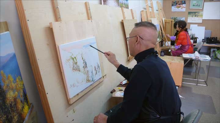 싸부님이신 정명열 화백님답게 제 자리에 앉으시고 그리기 시작 합니다.