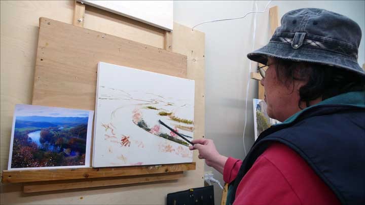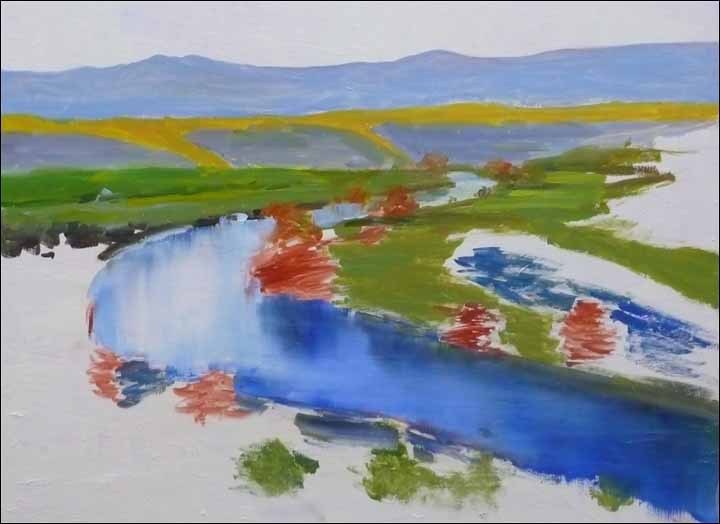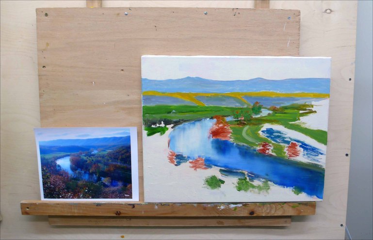 "맞어! 내가 촬영한 Shenandoah River 사진. 그거 그려보자! 위의 그림은 나중에 완성시키고.."