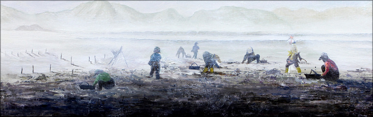 갯벌에서 부지런이 조개를 잡습니다. 사실 그 작업은 고단한 작업이지만 그 자체를 아름답게 보았습니다.