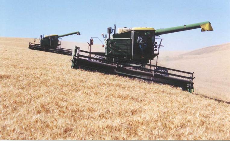 이 Combine Tractor 한대가 하루에 200 에이커 작업을 한답니다.