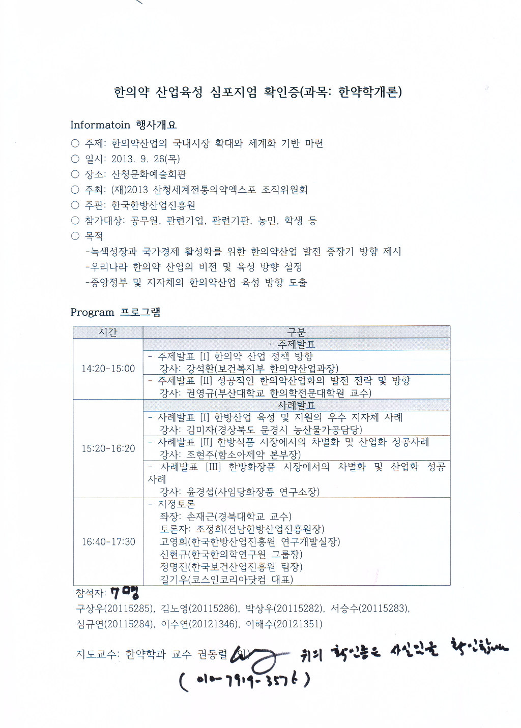 한약학과 권동렬 교수님이 함께 참석하셔서 사실확인을 해주셨습니다.