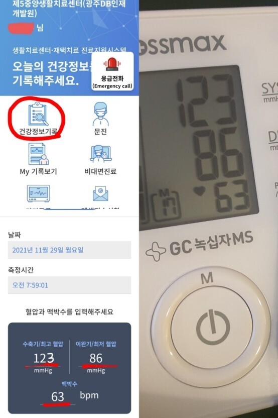 - 체온, 혈압, 맥박, 산소포화도, 혈당