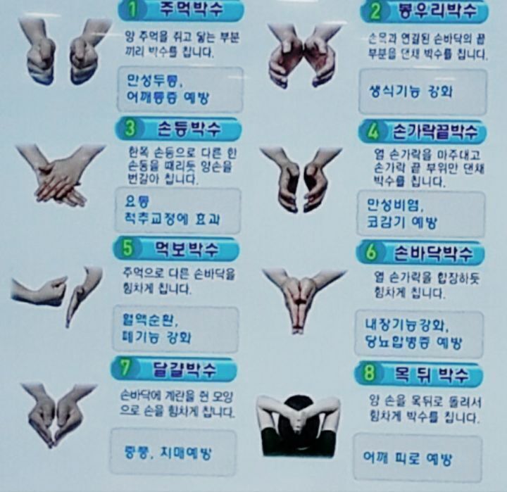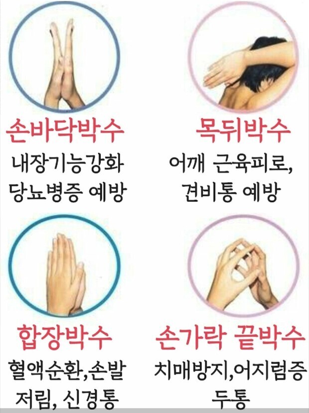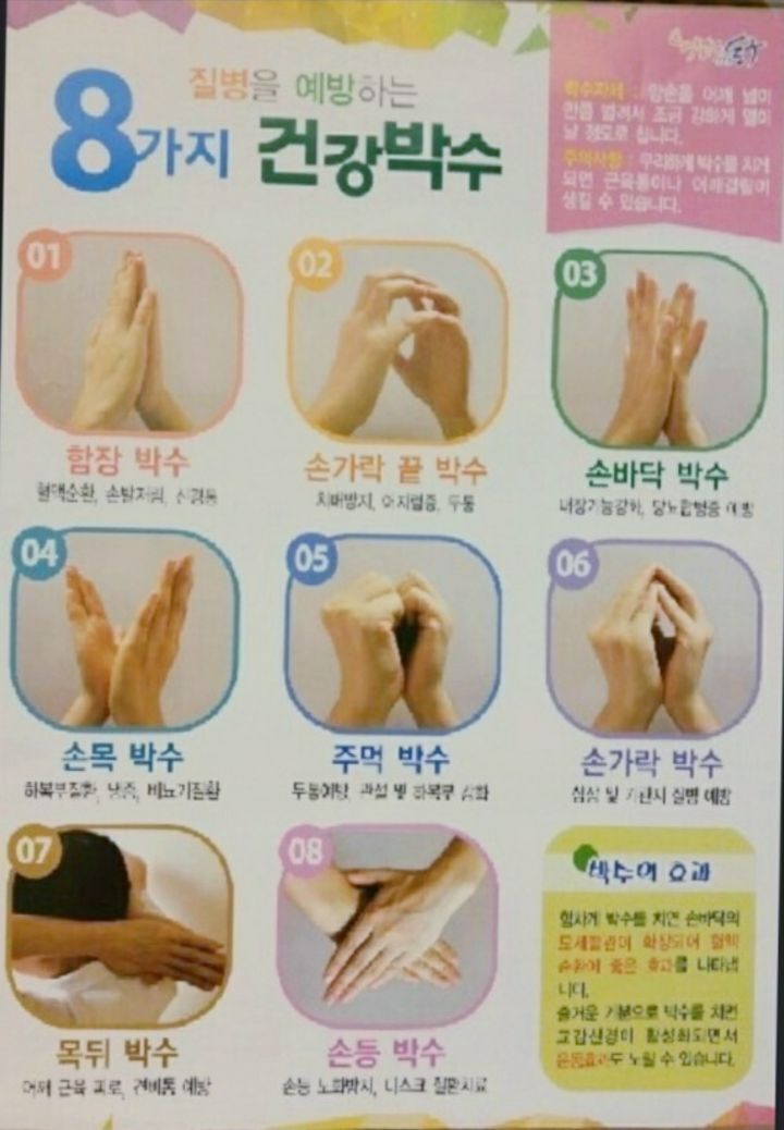 박수로 건강 챙기자ㅡ건강박수법 총정리ㅡ손을 많이 움직이는 ㅡ사람들이무병장수한다는ㅡ 실질적인 통계자료도 있다ㅡ건강박수 배워서 건강 하시고