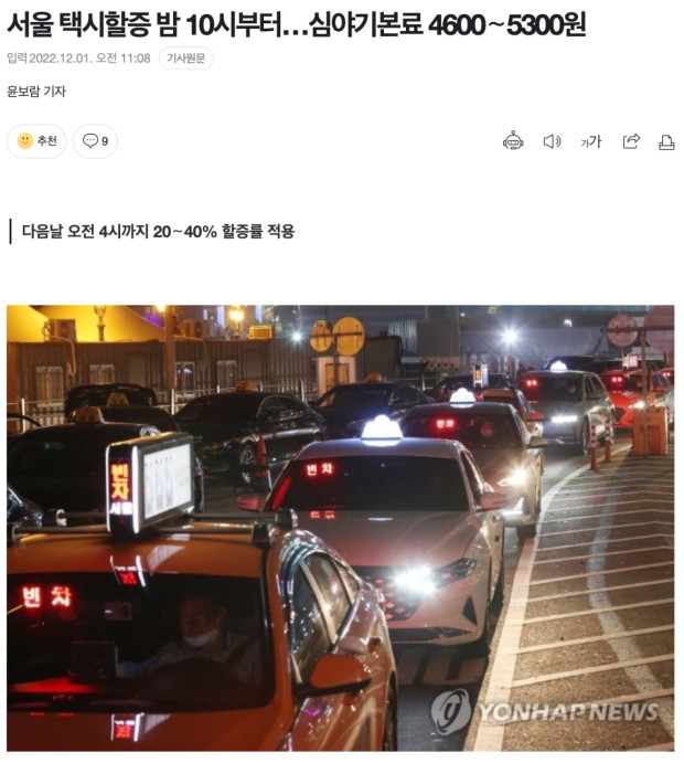 택시요금이 할증시간이고
