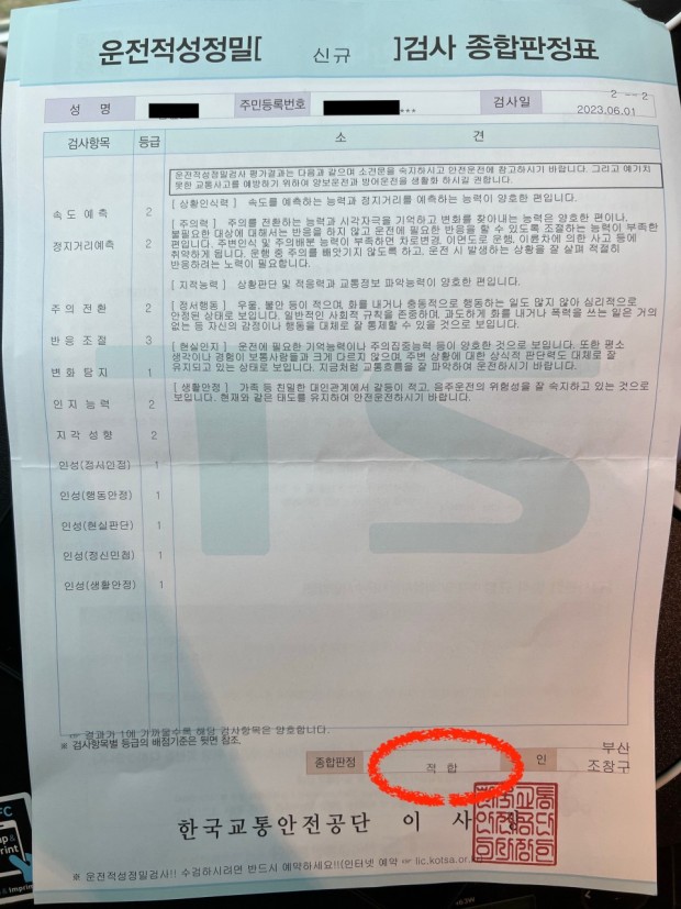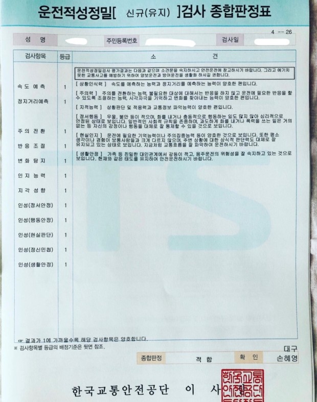 운전정밀검사합격증과
