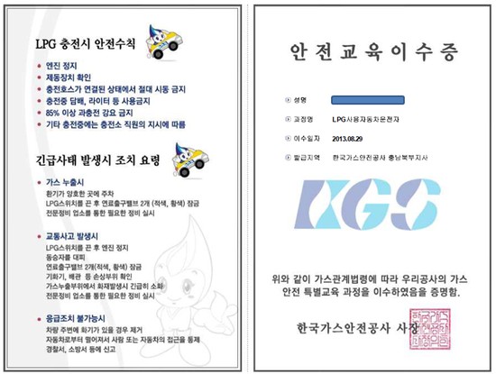 LPG 가스안전교육이수증
