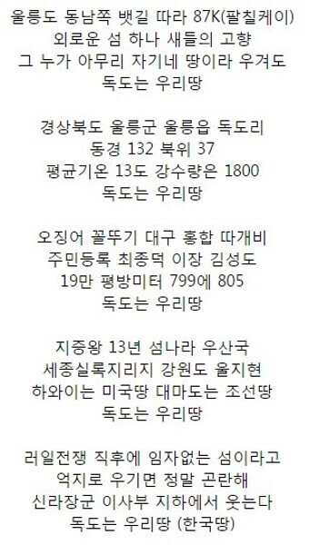 「독도1)는 우리 땅」이라는 노래가 있다.