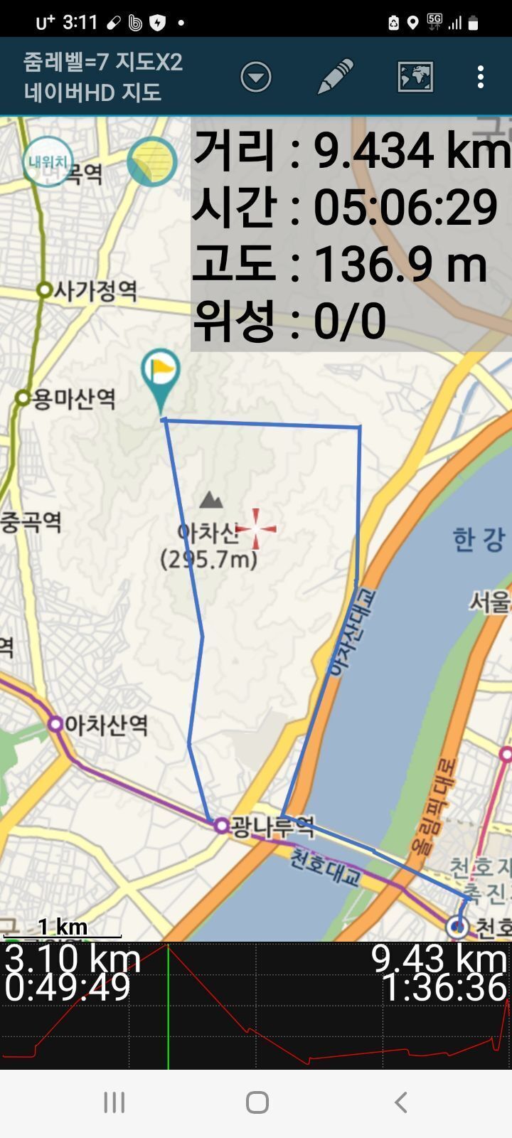 광진교 천호역 산행 ㅡ