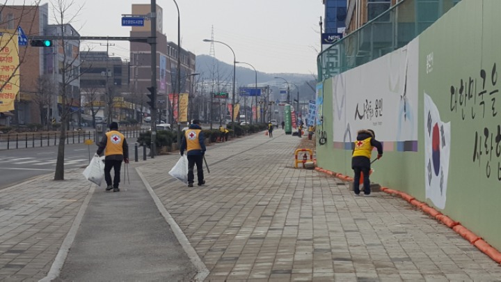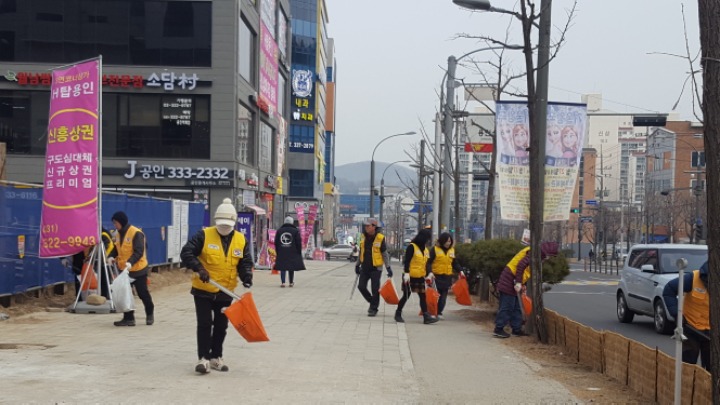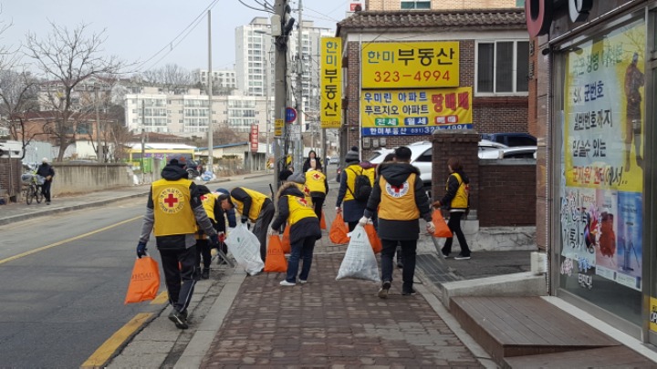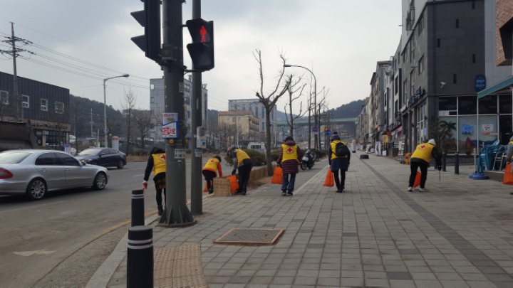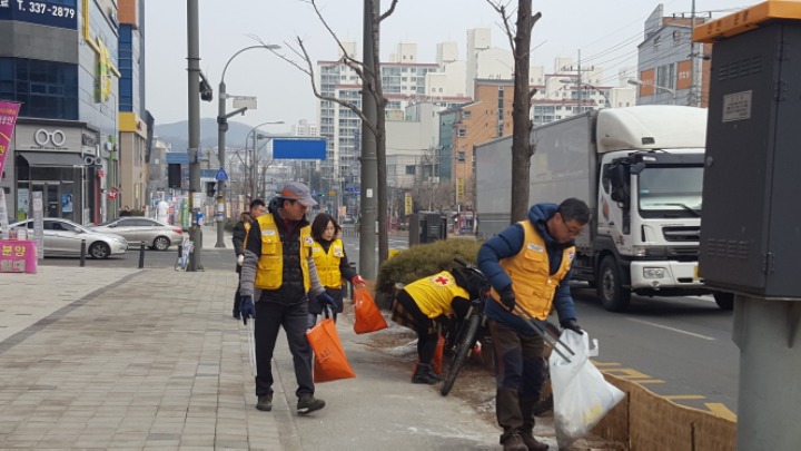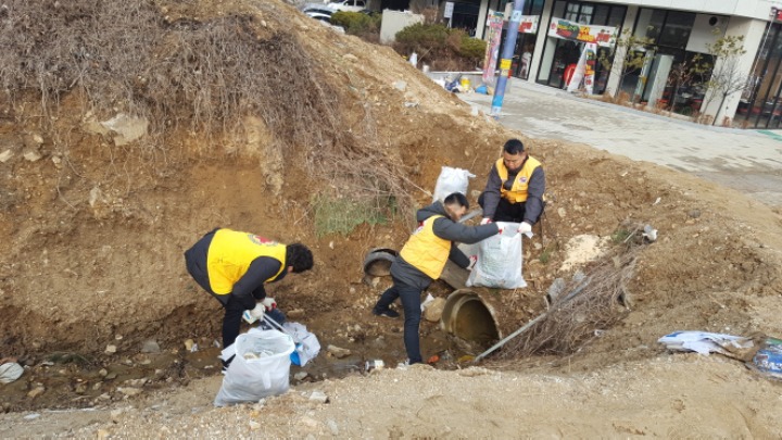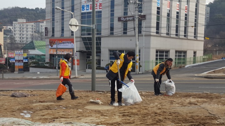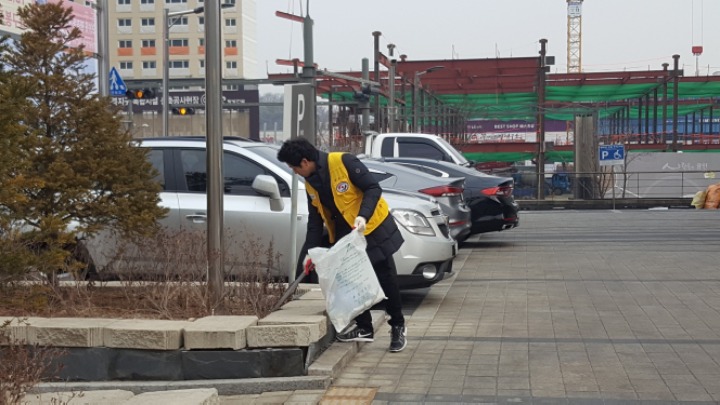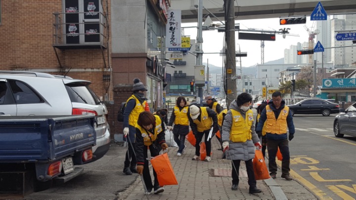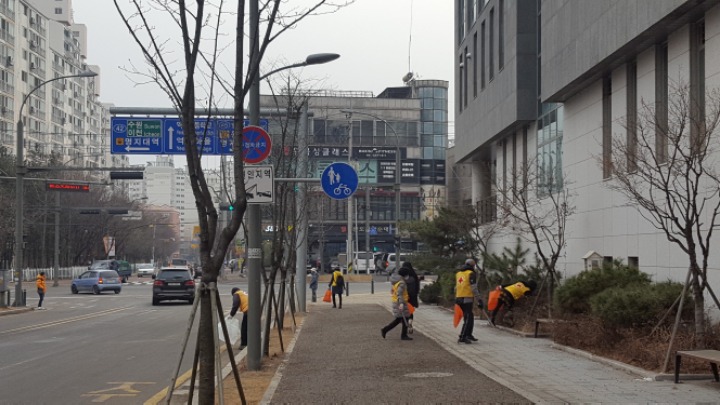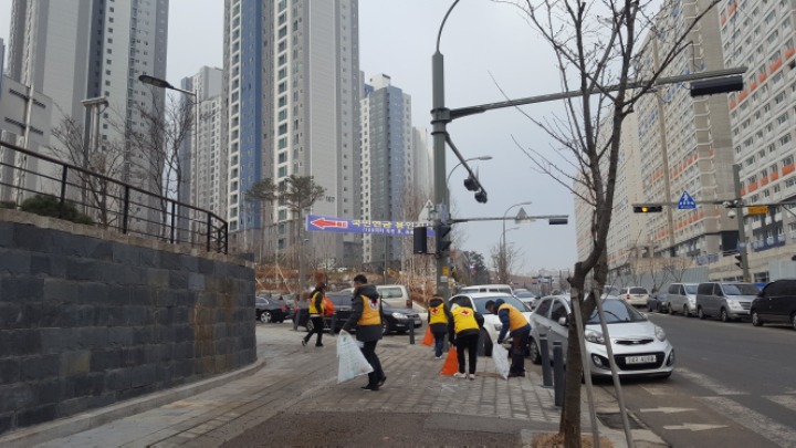 온누리 아파트 까지 거리에 쓰레기를 줍는