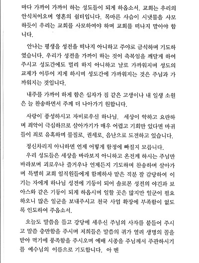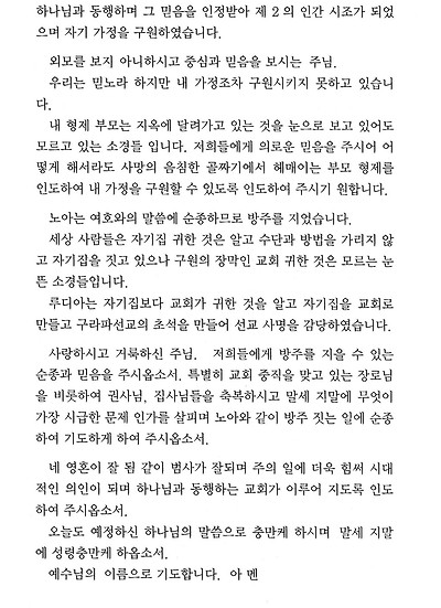 희들이 한 마음으로 기도하오니 저희 성도들의 모든 가족들이
