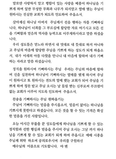 이 예배를 주님께서 홀로 받아주시고 저희들에게는 한량없는 은혜를 베풀어 주시옵소서.