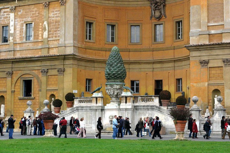 성 베드로 성당.서기 1-2세기에 주조된 후, 이 거대한 “청동 솔방울”은 분수의 역할을 하였다.