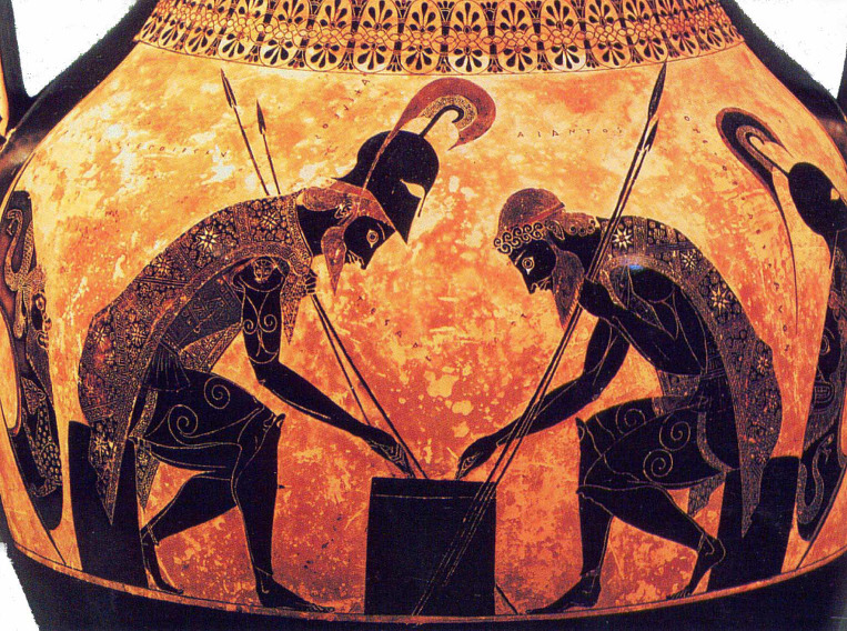 박물관-도9 안도치데스, 장기를 두는 아킬레스와 아이아스 적화식 아틱 도자기,기원전 540년 경,