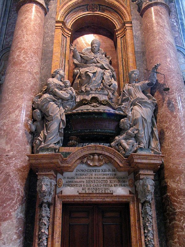17세기에는 현재의 위치에 있게 된다. 솔방울은 ‘번영’의 상징이라고도 한다. 옆에는 두 마리의 공작이 있다.