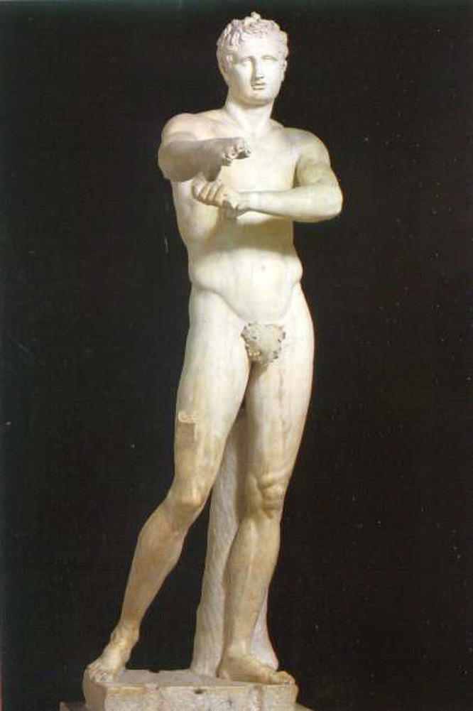 이 조각상은 기원전 320년경 리시푸스가 청동으로 만든 것을 1세기 무렵 로마에서 모방 한 대리석 작품이다.