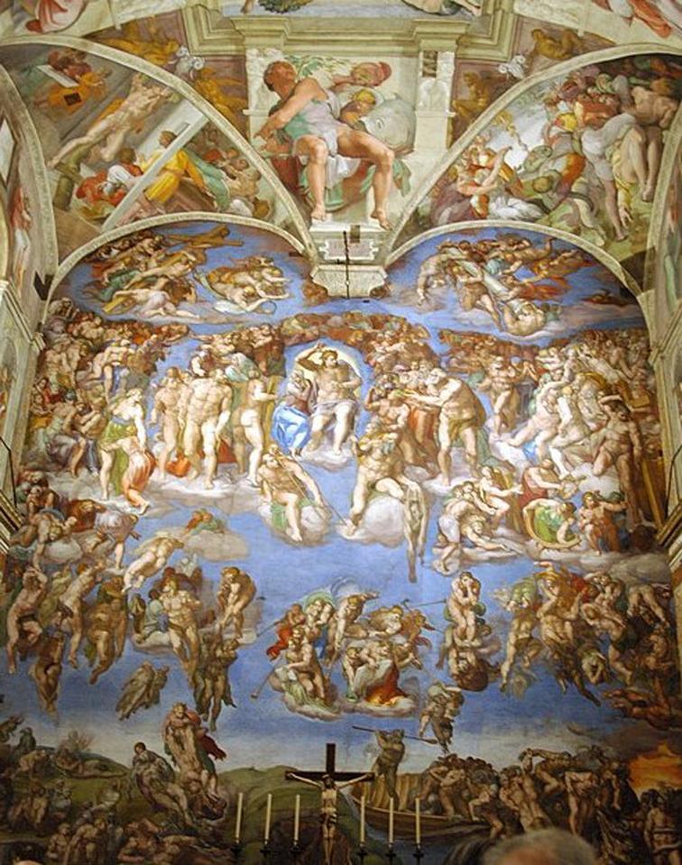 미켈란젤로가 시스틴 소성당 정면에 그린 최후의 심판의 장면도.2백 평방의 벽에 391인의 인물이 그려짐