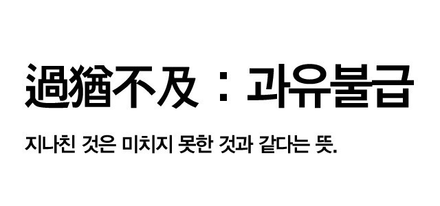 ▲ 과유불급(過猶不及)은 지나침은 모자람과 같다는 의미 이지요