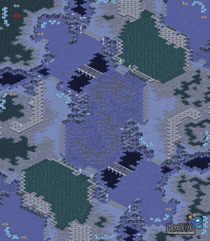 - 가장 짧은 러시경로는 얇은 다리로 되어있기에 초반 압박용 이외에 큰 병력을 이동시키기는 힘들다.