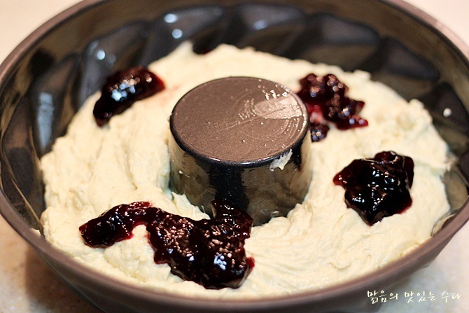 그런데 굽기 전,,, 틀에 포도잼부터 넣은 것이... 오!! 나의 실수~~~!!