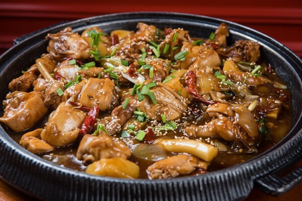 언뜻 닭볶음탕과 비슷해 보이지만, 재료만 같을 뿐 맛은 전혀 다르다. 진한 간장국물에 납작한 당면, 간이 촉촉하게 밴 닭봉과 쫀득쫀득한 떡은 찜닭의 구수한 풍미를 더해준다. 맛깔나게 채소와 쓱싹쓱싹 볶아 먹는 것도 좋지만, 또 유명한 찜닭용 볶음밥 중에는 누룽지 볶음밥도 있다. 바삭한 누룽지 볶음밥을 찜닭 국물에 넣고 숟가락으로 잘게 부수며 먹는 것도 진미다. 바삭함을 자랑했던 누룽지도 시간이 지나면 국물에 못 이겨 눅눅해지면서, 누릉지 속에 국물이 속속 배어들기 시작한다. 고소하면서도 짭짤한 맛을 동시에 느낄 수 있다.