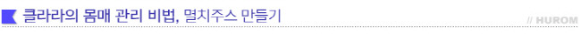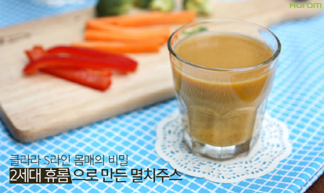 클라라의 건강한 S라인 몸매 비결 멸치주스, 그 맛이 궁금하시죠? 살짝 비릿하지만 고소하면서 쌉싸름한 맛이 꽤 매력적이에요. 식사 전후로, 또는 간식으로 간단하게 만들어 챙겨 마시면 몸이 저절로 건강해질 것 같아요. 휴롬지기도 열심히 챙겨먹고 클라라 몸매에 도전해보려고요~ 휴롬가족 여러분도 클라라 멸치주스와 함께 건강 챙기기는 물론 멋진 몸매까지 만들어보시길 바랄게요! ^^