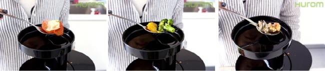 ?휴롬 원액기에 데친 재료를 모두 넣고 착즙해주세요. 착즙하면서 수분이 부족하다 싶으면, 재료를 데친 물을 조금씩 넣어 착즙하면 됩니다.
