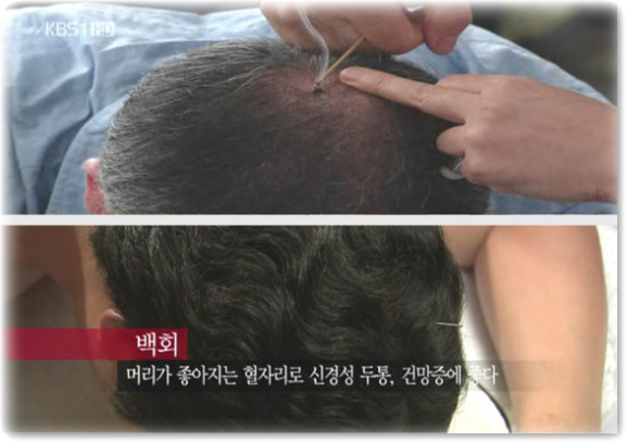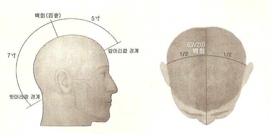 1. 백 회(百 會) : 많은 경맥이 모이는 곳에 있는 혈이라는 뜻.