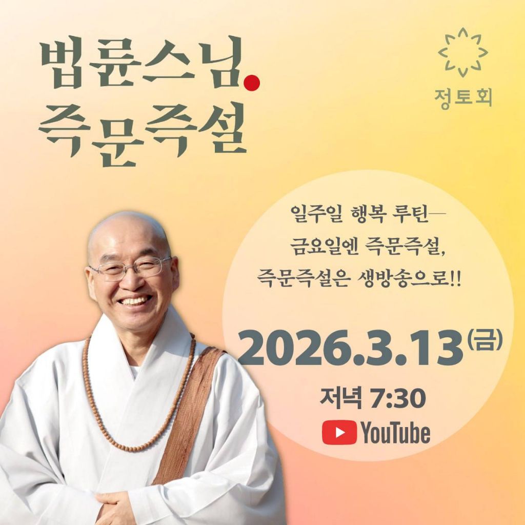 이번 주는 스님의 해외일정으로 녹화된 즉문즉설 영상이 실시간 전송으로 방송될 예정입니다.