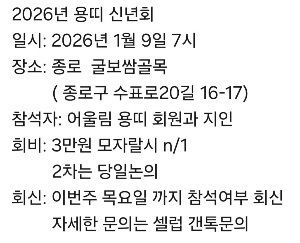 용띠님들 많은 참석 바랍니다~~