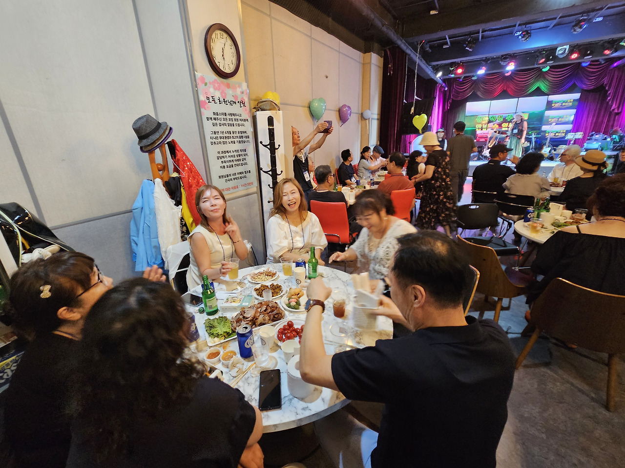 | 안내 사항 | ▷ 개인기 원하시는 님들은 댓글로 신청 가능합니다(올갠, 기타, 드럼, 섹소폰, 장구..etc) ▷ 단체 무도 및 합창 가능합니다. ▷ 특별 개인 무대를 원하실 경우도 가능합니다. ▷ 그 외에 원하시는 것이 있다면 댓글로 편하게 신청하십시오~ ▷ 참석 댓글시, 선곡 2곡 신청 요(희망자) ▷ 방청석으로 참관만 하셔도 됩니다. ※ 원활한 진행과 쾌적한 분위기를 위해 선착순 50명으로 인원을 제한합니다. |