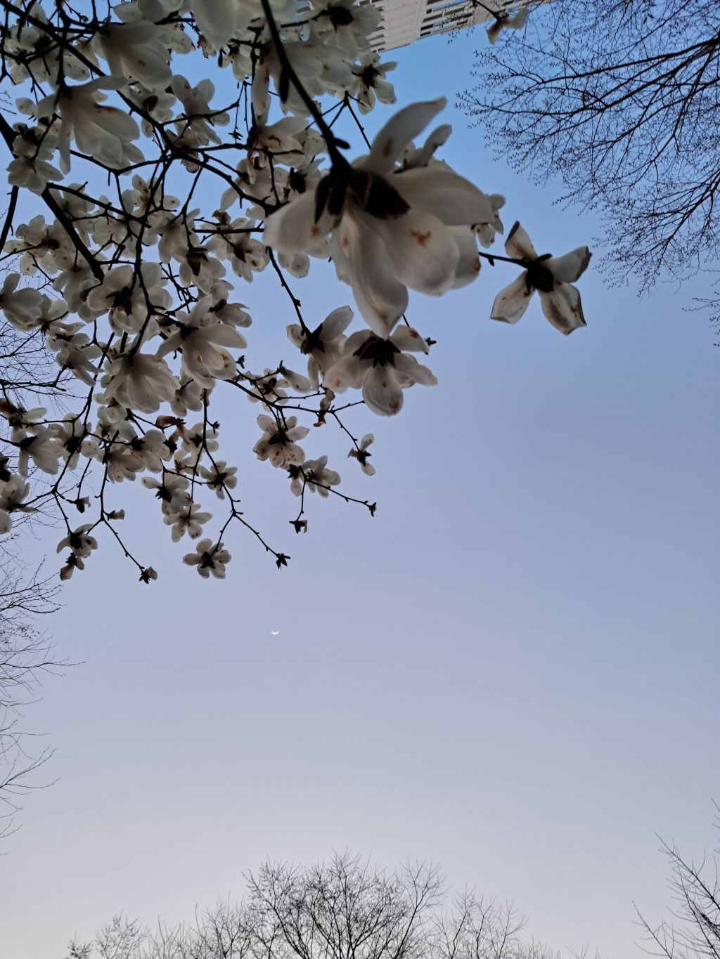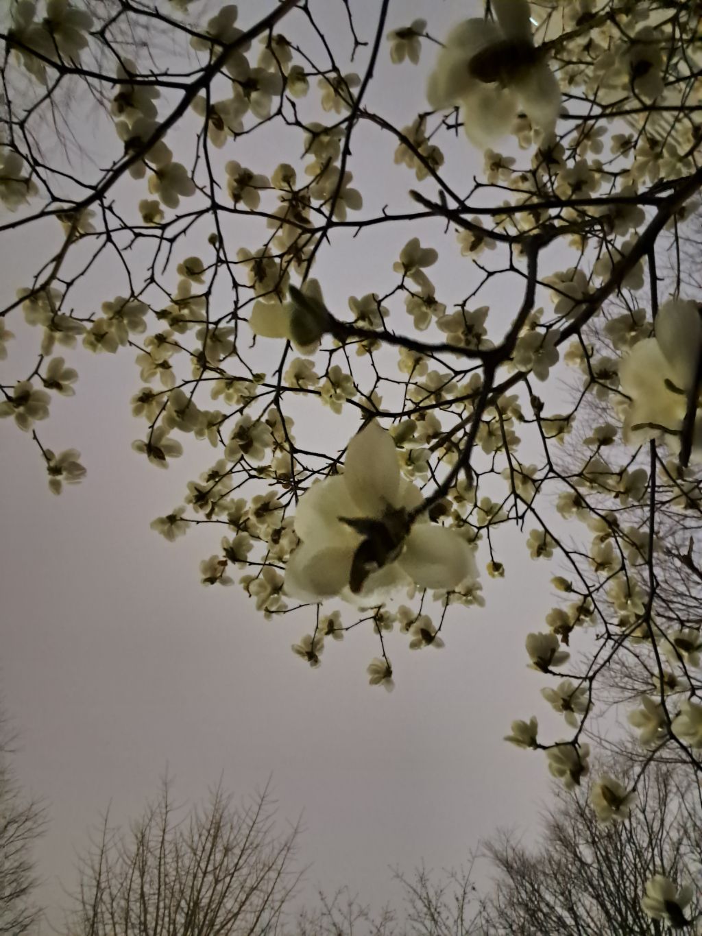 4월이 문을 여는 날 저녁 아파트 뒷길 목련.