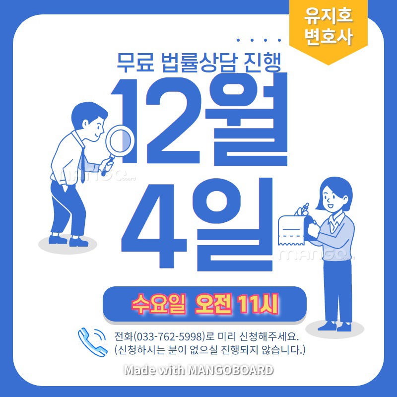 무료법률상담 시간 변경 작성자원주시장애인가족지원센터|작성시간19.11.29|조회수113 목록 댓글 0 글자크기 작게가 글자크기 크게가 무료법률상담 관련하여 진행 시간이11시로 변경되었습니다.12월 4일 오전 11시 진행 다음검색 현재 게시글 추가 기능 열기 북마크 공유하기 신고 센터로 신고 댓글 댓글 0 댓글쓰기 답글쓰기 댓글 리스트