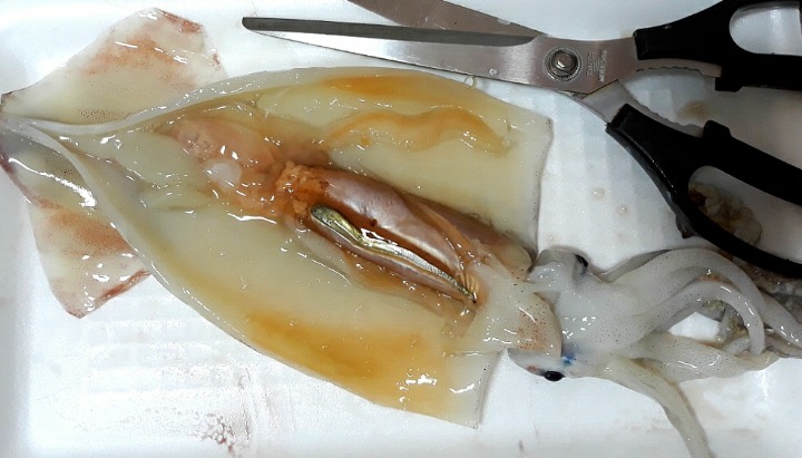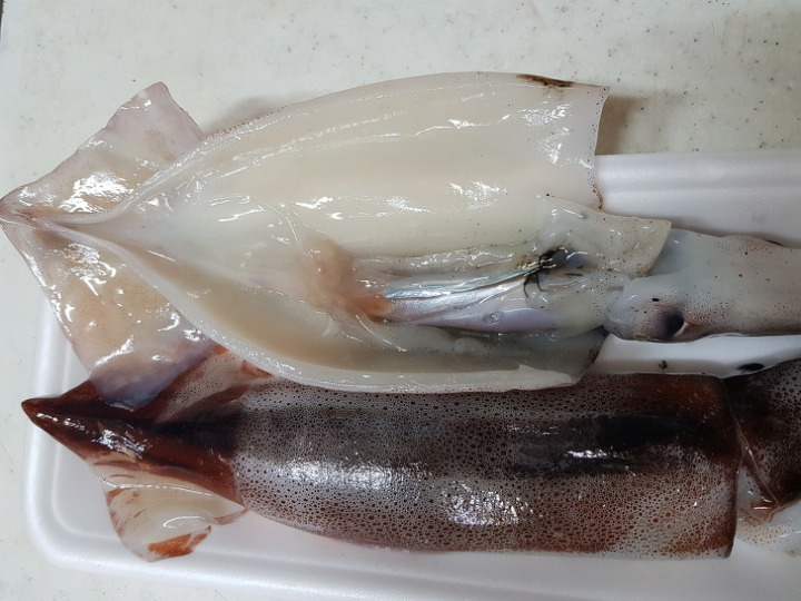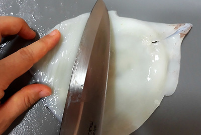 오징어매운국 시원하고 얼큰한 <오징어매운국> 속이 얼큰해지는 매운국 오징어 2마리 , 무 1/6개, 대파 1/2뿌리, 청양고추 1개, 홍고추 1/2개, 다시마물 5컵, 소금·후춧가루 약간씩, 매운 양념장(고춧가루 2큰술, 고추장·멸치액젓 1큰술씩, 다진 파 1큰술, 다진 마늘 1/2큰술, 된장 1작은술) - 1. 오징어는 내장을 제거하여 몸통은 동그랗게 썰고 다리는 5cm 길이로 썬다.