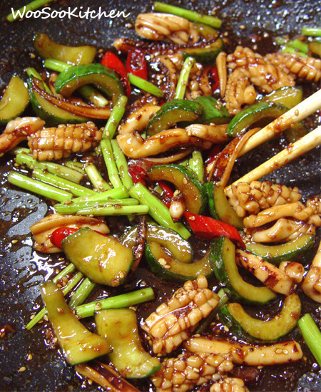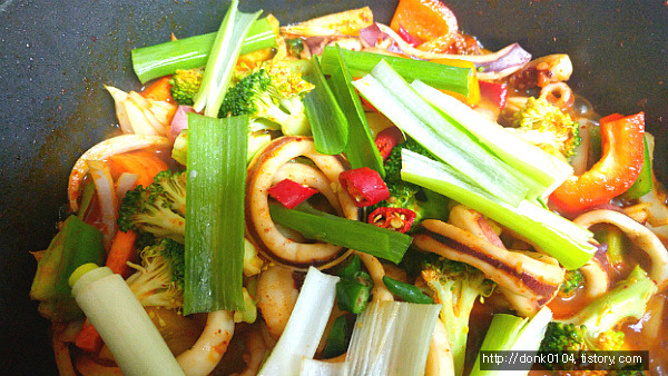 오징어나 낙지 같은 해산물은 오래 볶으면 질겨지고 요리에 수분이 많이 생기므로 마지막 단계에서 넣어준다. 소면을 곁들이면 볶음에서 나온 수분을 흡수해 깔끔하게 즐길 수 있다.