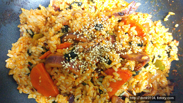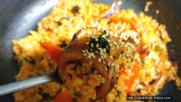 - 6. 마지막으로 ③을 넣어 간이 고루 배게 볶은 후 녹말물을 풀어 농도를 맞추고 참기름을 살짝 두른다.