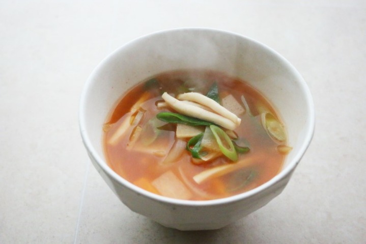 - 4. 무가 반쯤 익으면 분량의 매운 양념장을 넣고 한소끔 끓인다.