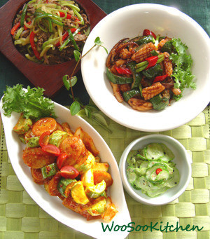- 5. 볼에 오징어와 해초, 오이, 양파를 고루 담고 ④로 버무린 후 통깨를 뿌려 낸다.